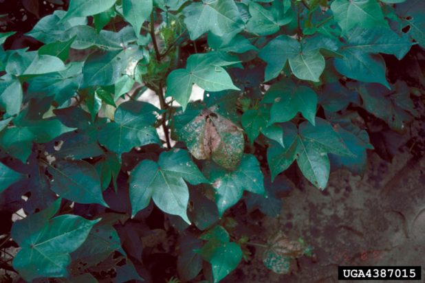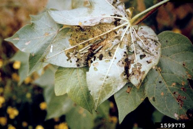 • Image by David Riley, University of Georgia, Bugwood.org (beet armyworm damage to sweet pepper plant)