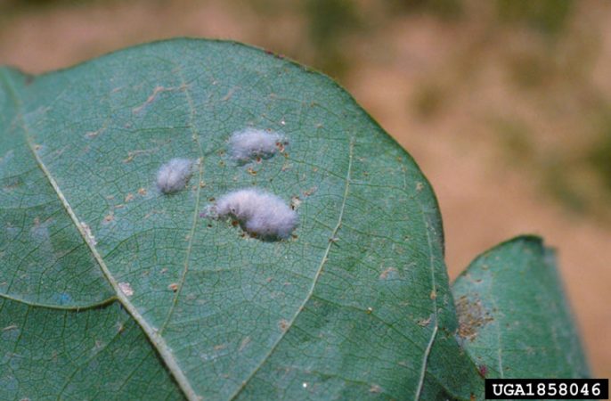 Traps baited with synthetic sex pheromone can be used to monitor adult populations.  Traps should be checked 1-2 times per week and lure changed as recommended by the supplier.  Inspect undersides of leaves and terminals for cottony egg masses.  Randomly inspect plants for skeletonized leaves and other feeding damage.  Sweep nets can also be used to detect larval infestations.  Infestation along edges of fields may be more severe than more central locations.