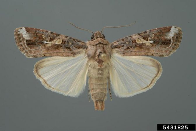 - Adult… (7-21 Days) Mottled tan, gray, brown or black in appearance with triangular white spots at the tip and center of the forewings. Female can lay up to 1500-2000 or more eggs. Mainly nocturnal. Most active during warm, humid nights. Lays eggs within 3-4 days of mating and can last up to 3 weeks. Most eggs are laid within the first 4-5 days.