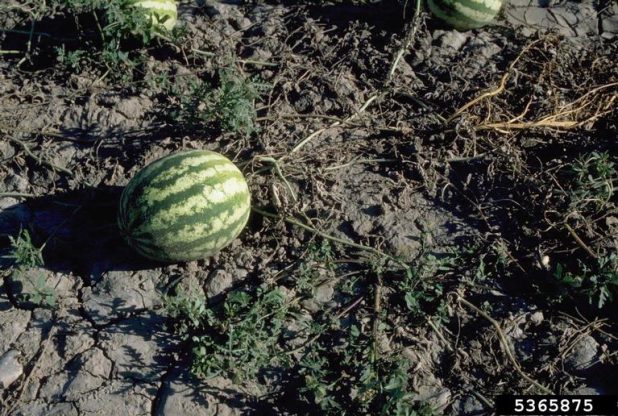 - Thickening and widening of the stem at ground level can be indicative, though this can be confused with herbicide damage, esp in watermelons.