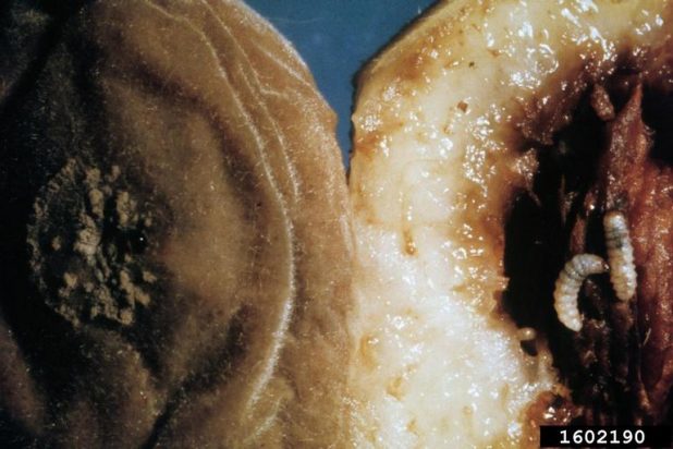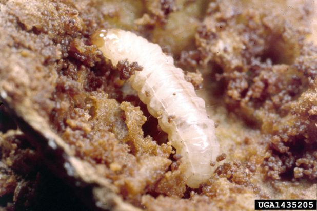 - Image by John C. French Sr., Retired, Universities:Auburn, GA, Clemson and U of MO, Bugwood.org (larvae in peach)